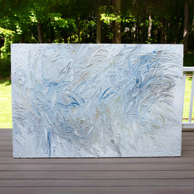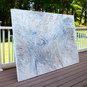 This series of paintings are so thick and textured they are like wall sculptures on gallery wrapped canvas. The paint extends off and around the sides like frosting and is part of the artwork. Because of this no framing is needed. The canvas is wired and ready to hang.