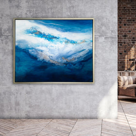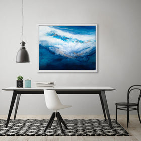 This contemporary abstract art is a custom giclee print on canvas. Please select your preferred size, finishing and frame. Note that adding a frame will increase the overall dimensions by 1 to 2 inches.