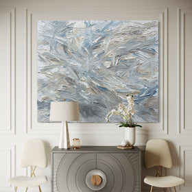 This series of paintings are so thick and textured they are like wall sculptures on gallery wrapped canvas. The paint extends off and around the sides like frosting and is part of the artwork. Because of this no framing is needed. The canvas is wired and ready to hang.