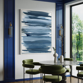 This contemporary abstract art is a custom giclee print on canvas. Please select your preferred size, finishing, and frame. Note that adding a frame will increase the overall dimensions by 1 or 2 inches.